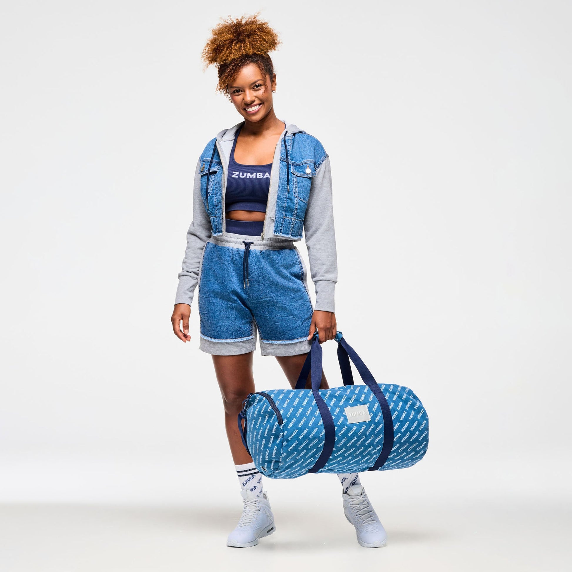 This Blue Jean Crop Zip-Up Hoodie blends stretch denim with soft French terry for unmatched comfort and flexibility. Featuring a front zipper, rib knit cuffs, and a hood with adjustable drawcords, it offers a relaxed, dance-ready fit that moves with you. The contrasting color block panels add a stylish edge, making it perfect for Zumba, workouts, or casual wear. With bold Zumba branding and a raw edge finish, this cropped jacket transitions effortlessly from studio to street.