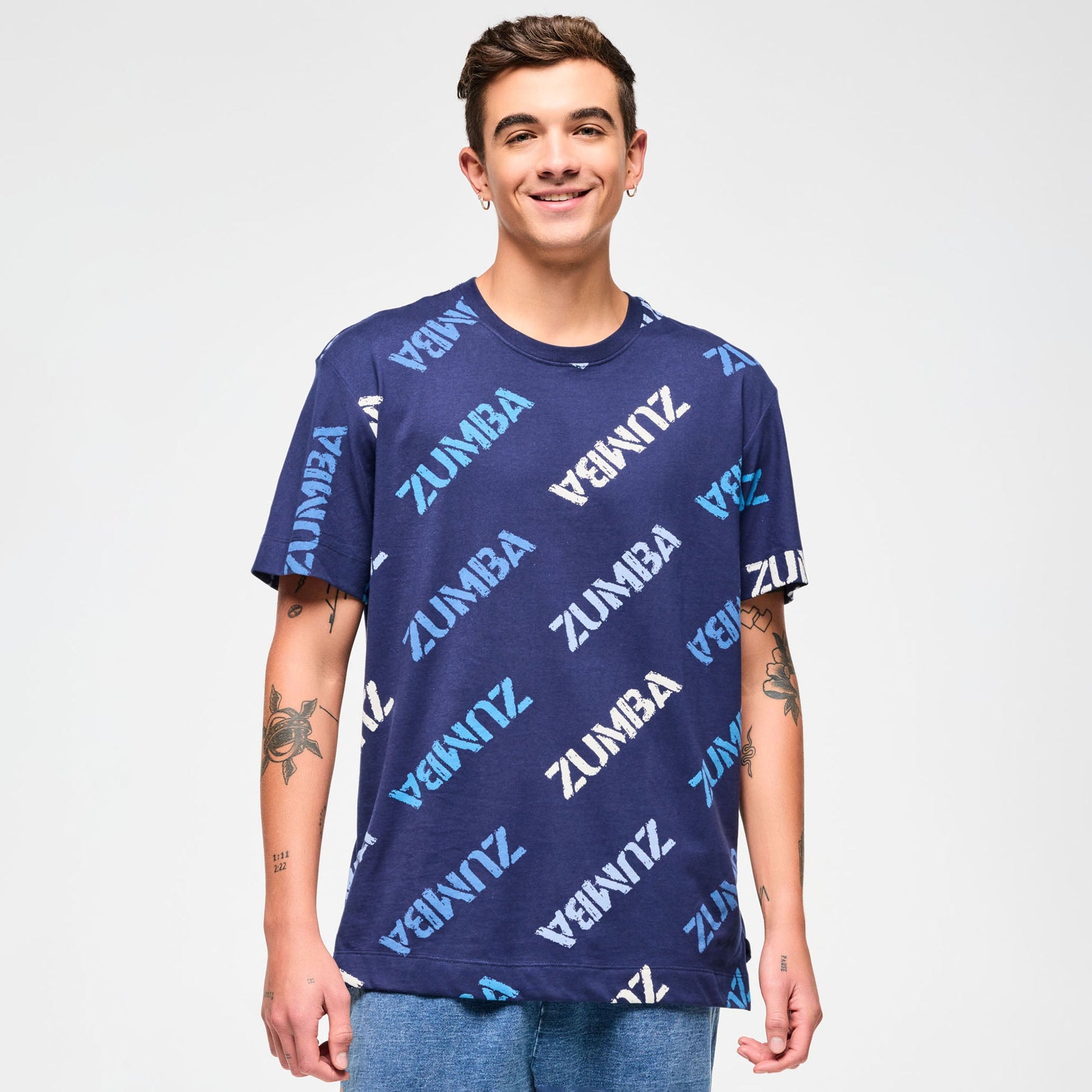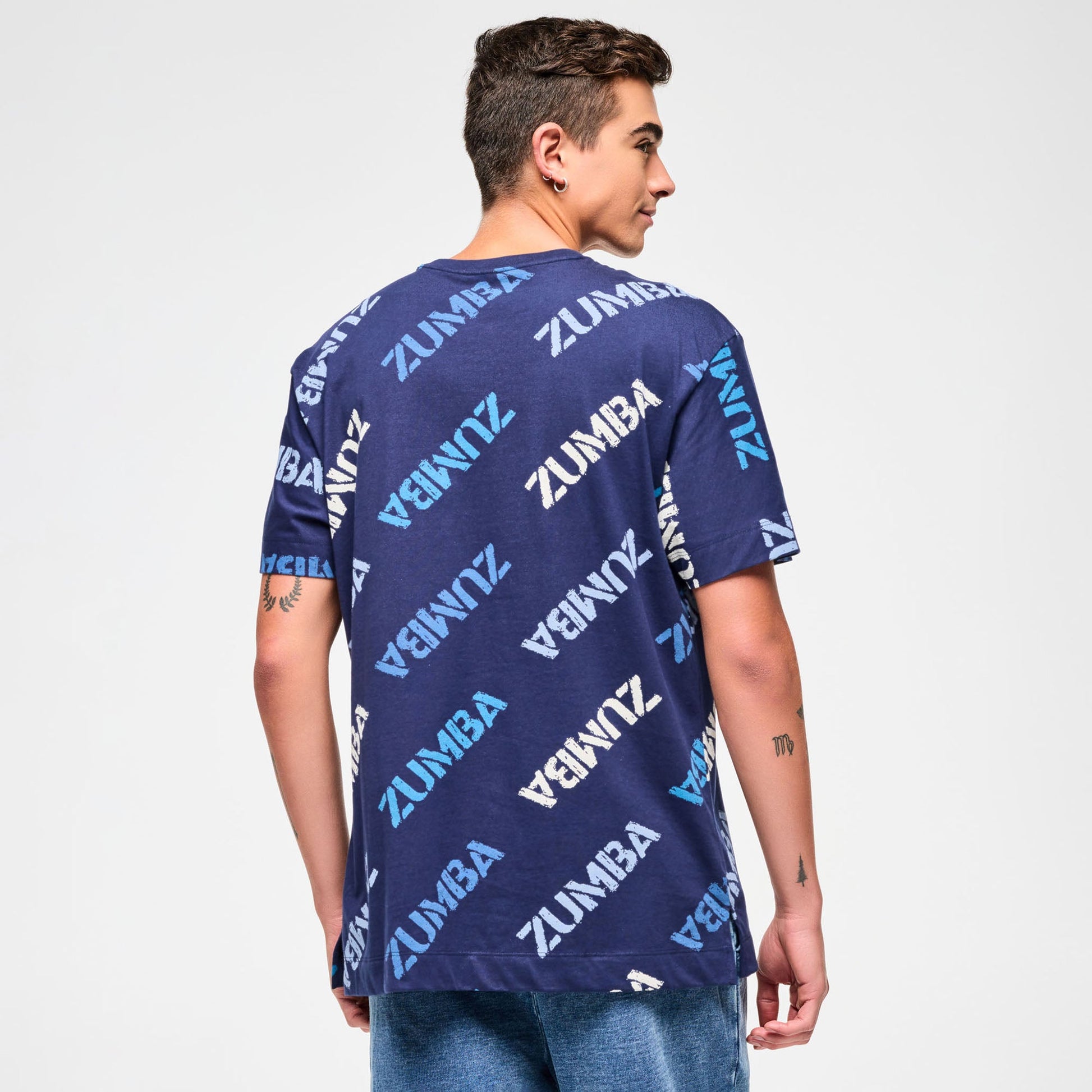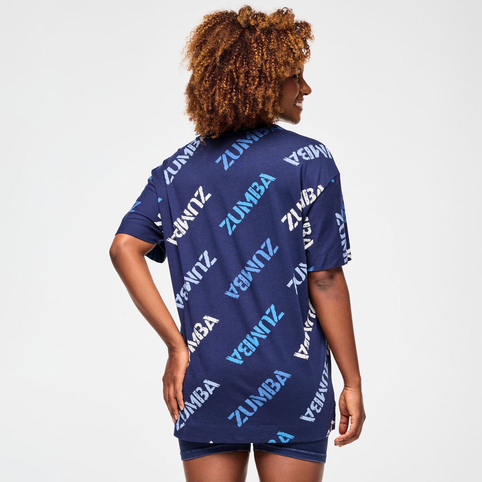 This oversized crew neck top features side vents that enhance mobility and a rib-knit collar for added comfort. Showcasing a unique Zumba-exclusive allover print, it offers a relaxed fit with an extended length, perfect for stylish, unrestricted wear.