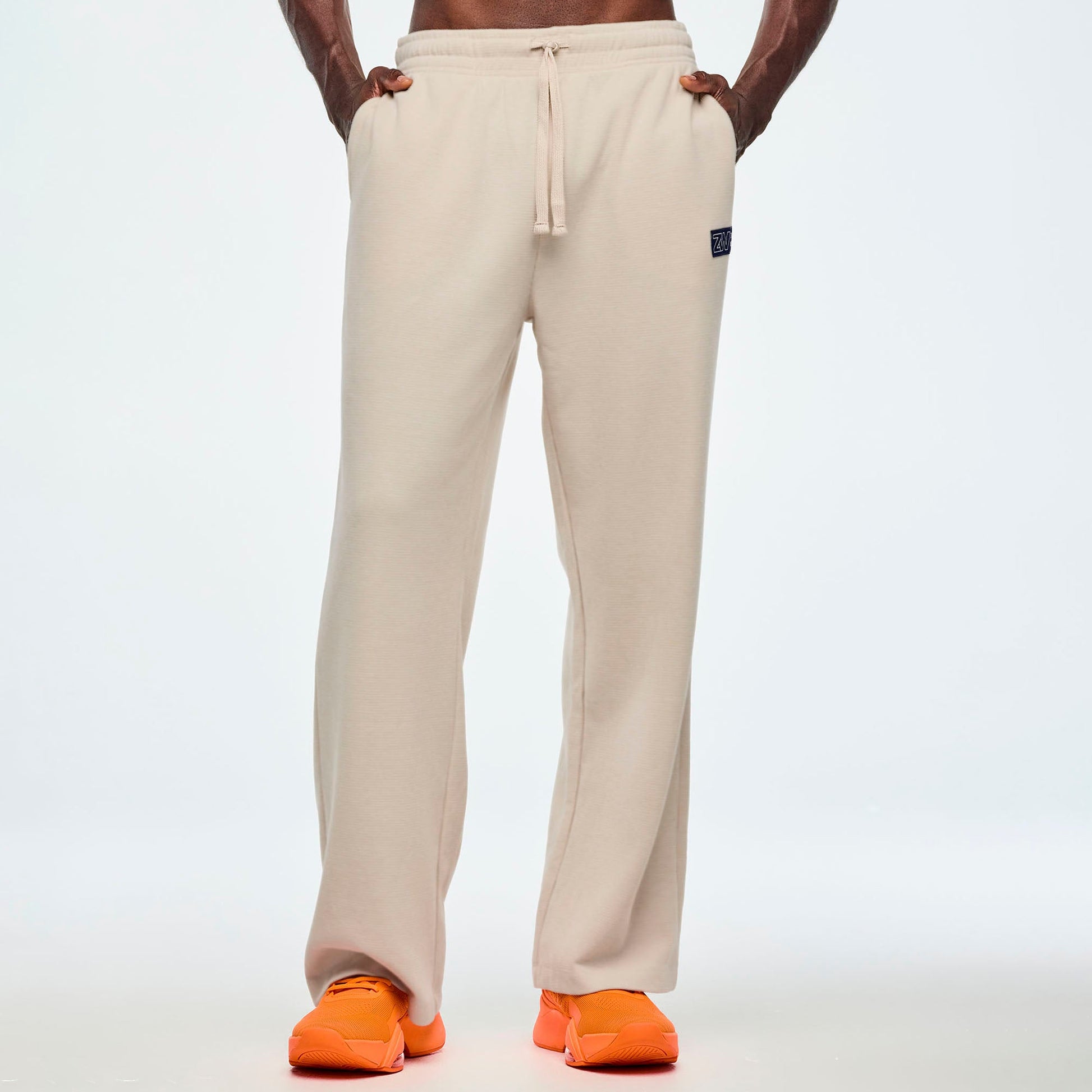 - Branded woven patch on leg