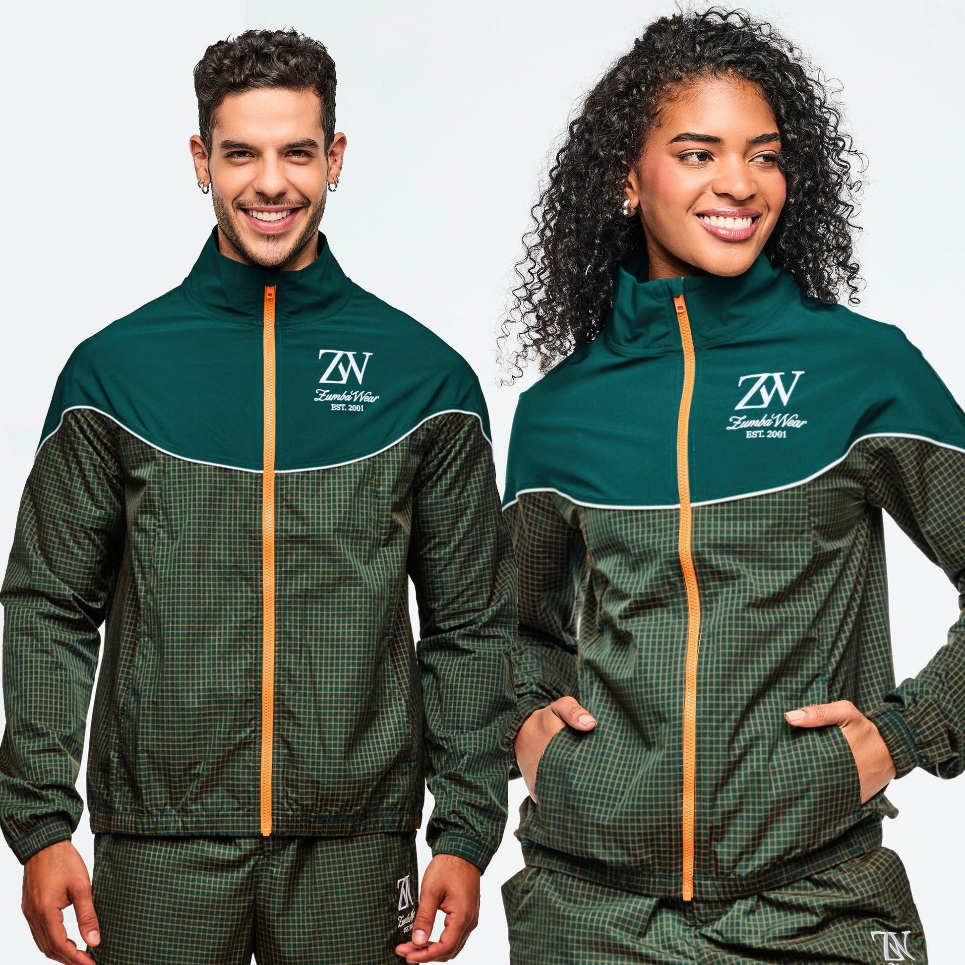 - Front zipper closure and encased elastic in cuffs and bottom band