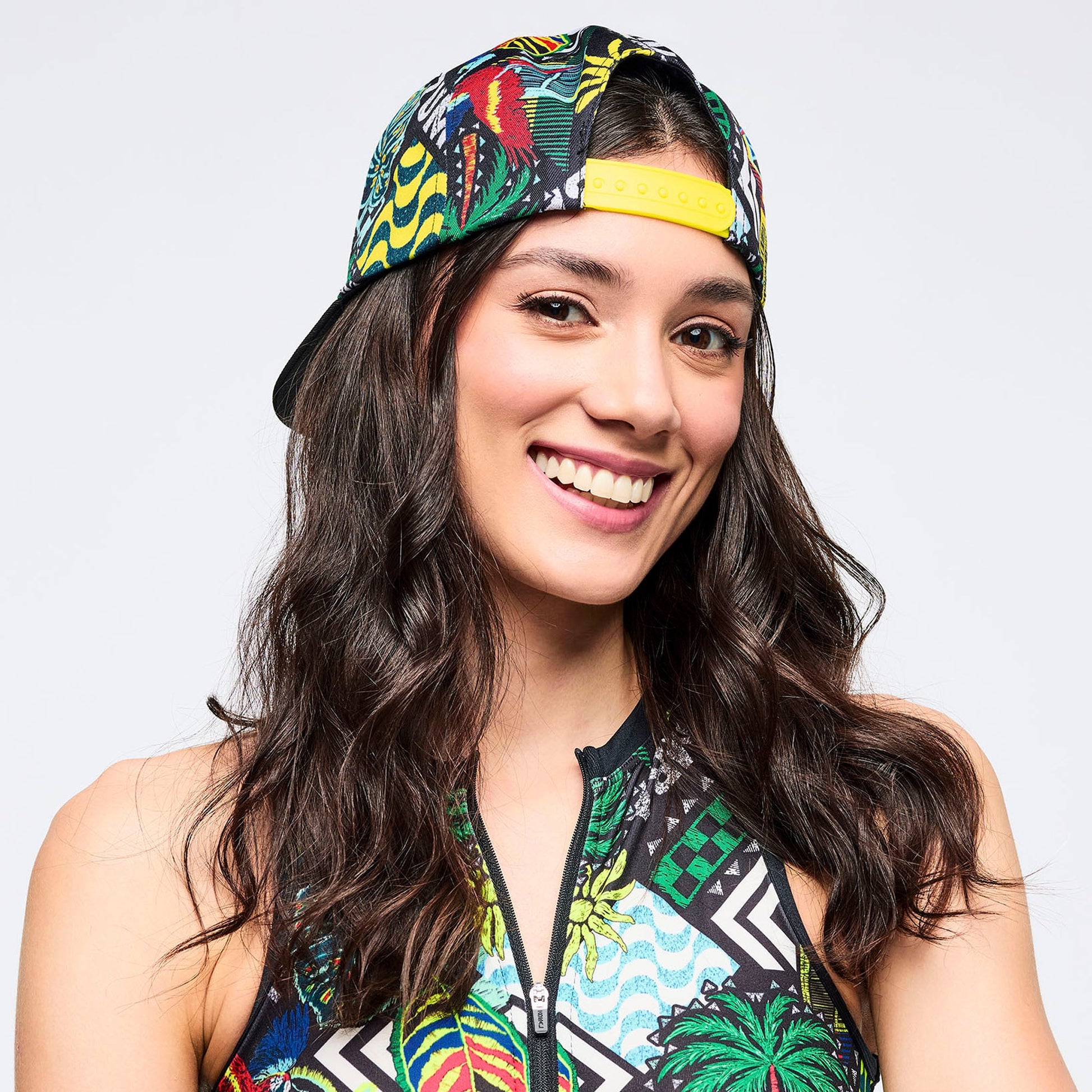 - 5-Panel Hat with embossed multicolor Zumba on the front crown and brim
