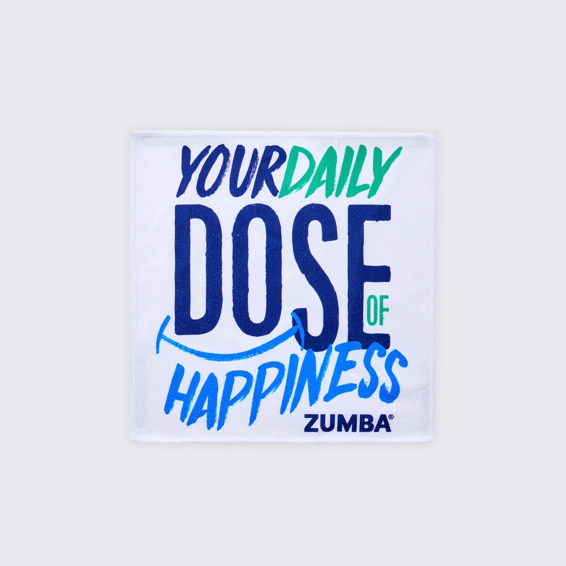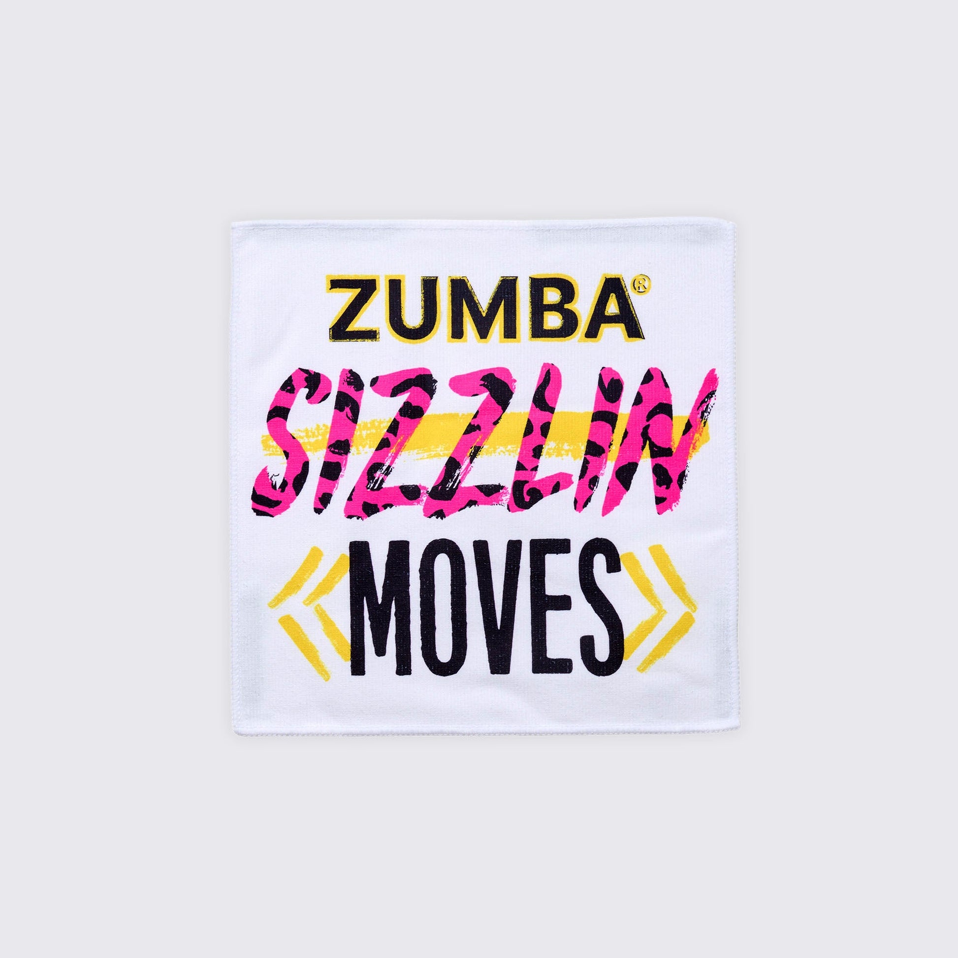 - Towel #2 has a pink paint stroke covering with blue animal print and a hand-drawn style Zumba