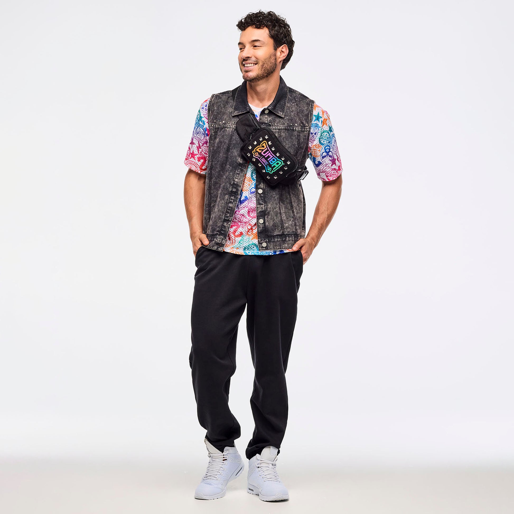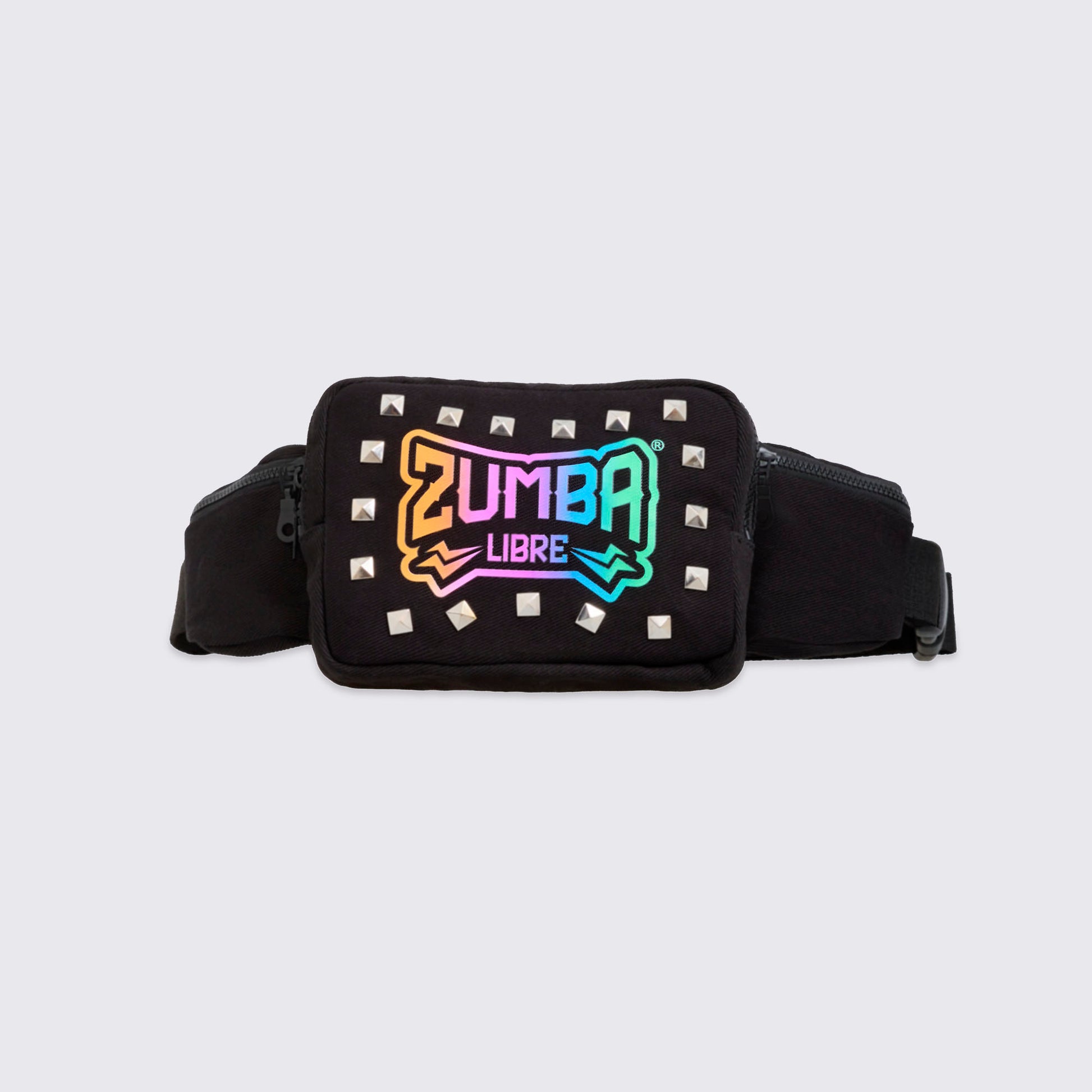 - Front artwork with a multicolor gradient Zumba Libre surrounded by silver pyramid studs