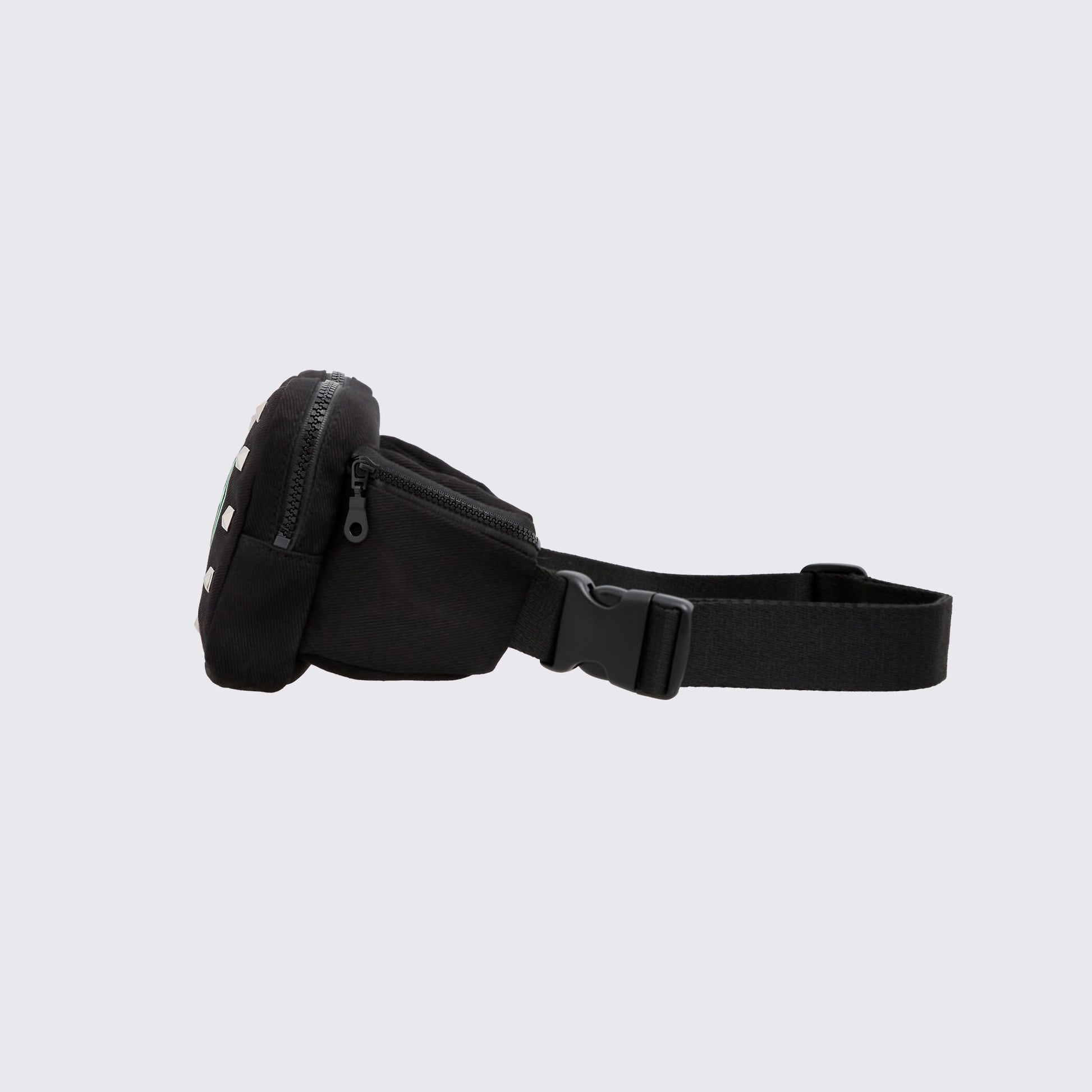 - Lined multi-pocket waist bag with zipper top closure, 2 side zipper closure pockets, interior pockets, and adjustable waist strap
