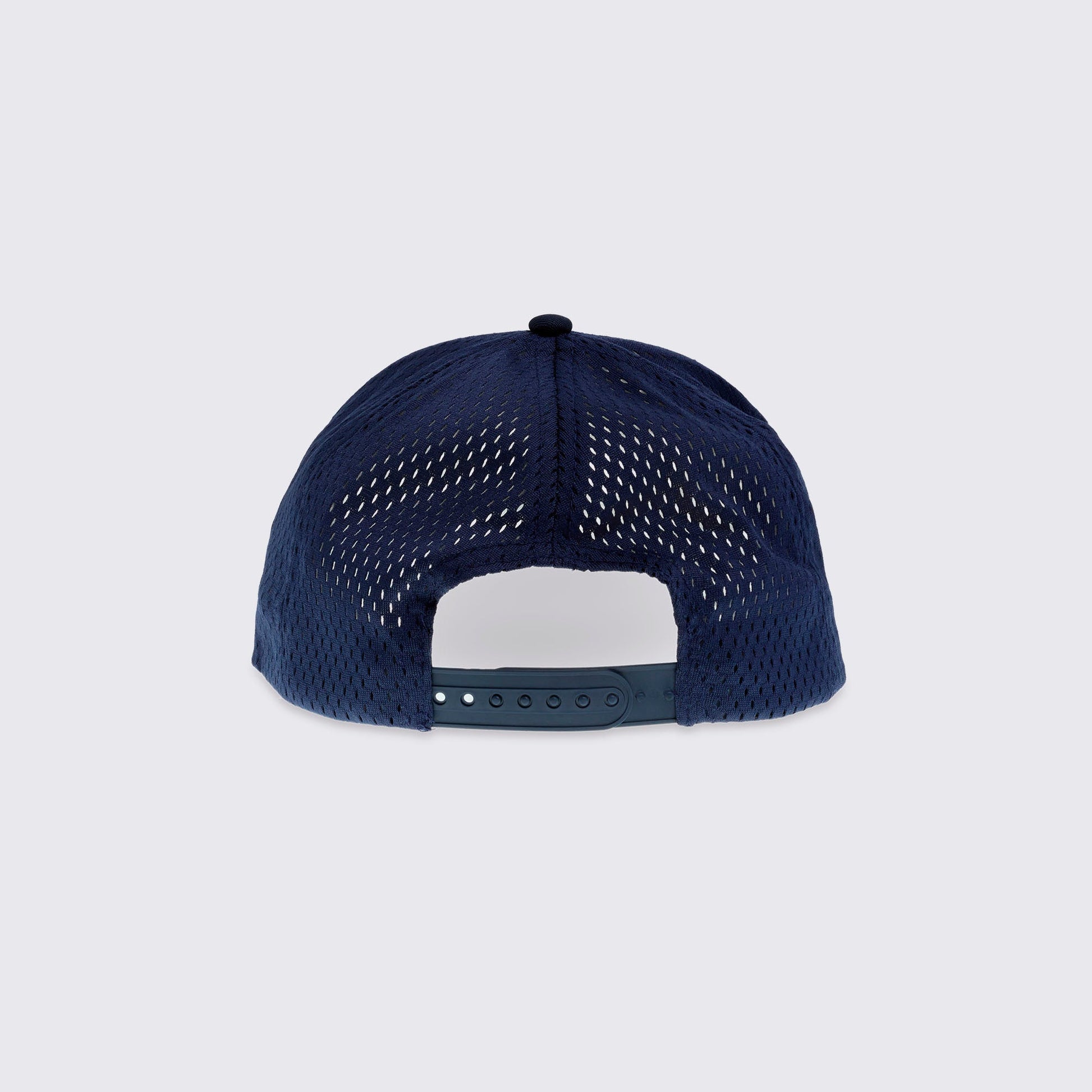 - 5-Panel Hat with curved brim and woven mesh back panels