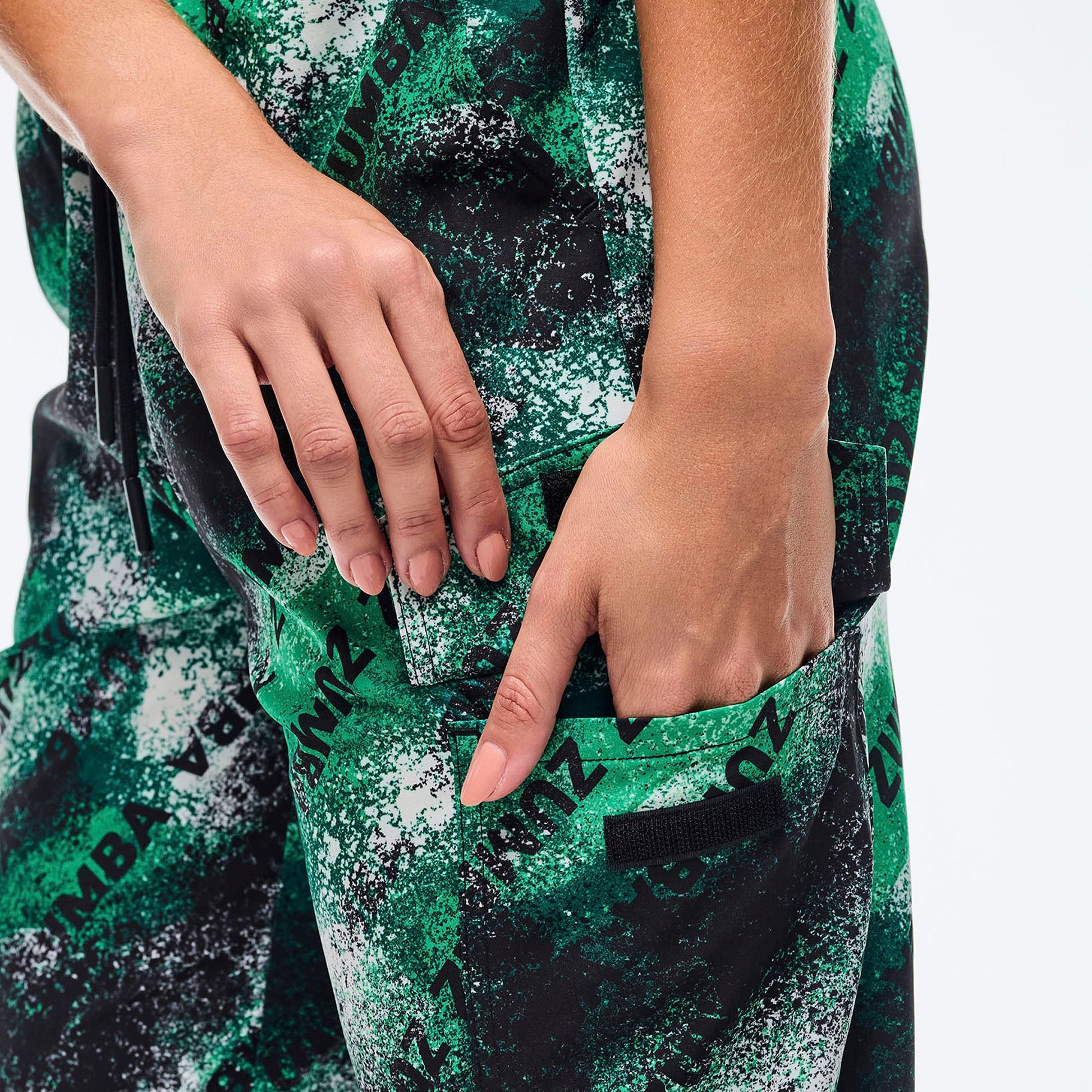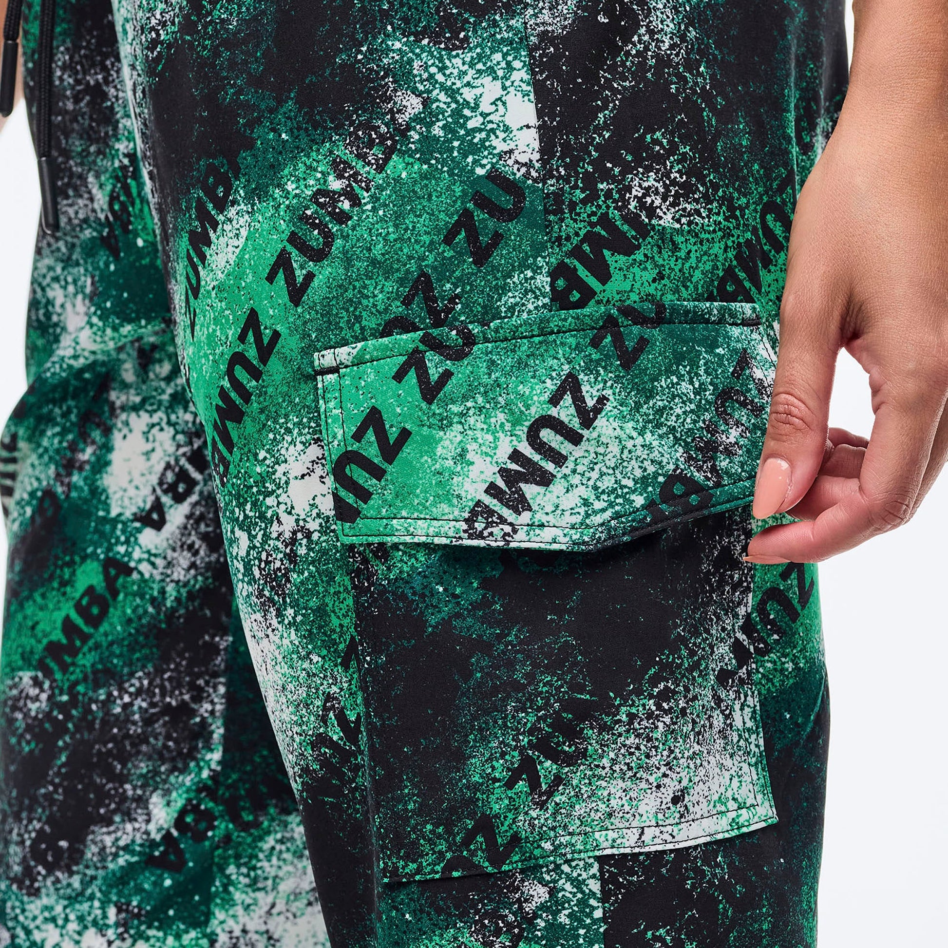These cargo pants offer a 28 1/2" inseam with an encased elastic waistband and bottom cuffs for a secure fit. Featuring a functional drawcord at the waist, slanted inseam pockets, and side cargo pockets, they combine practicality with style. The relaxed fit and exclusive Zumba all-over print complete this long-length, comfortable design.