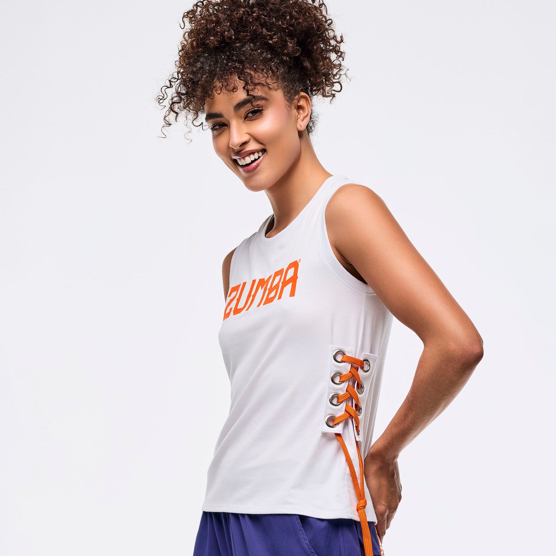 This tank features functional lace-up plackets on the sides for a customizable fit, complemented by branded artwork on the front chest. Designed with an easy fit and regular length, it combines style and comfort effortlessly.
